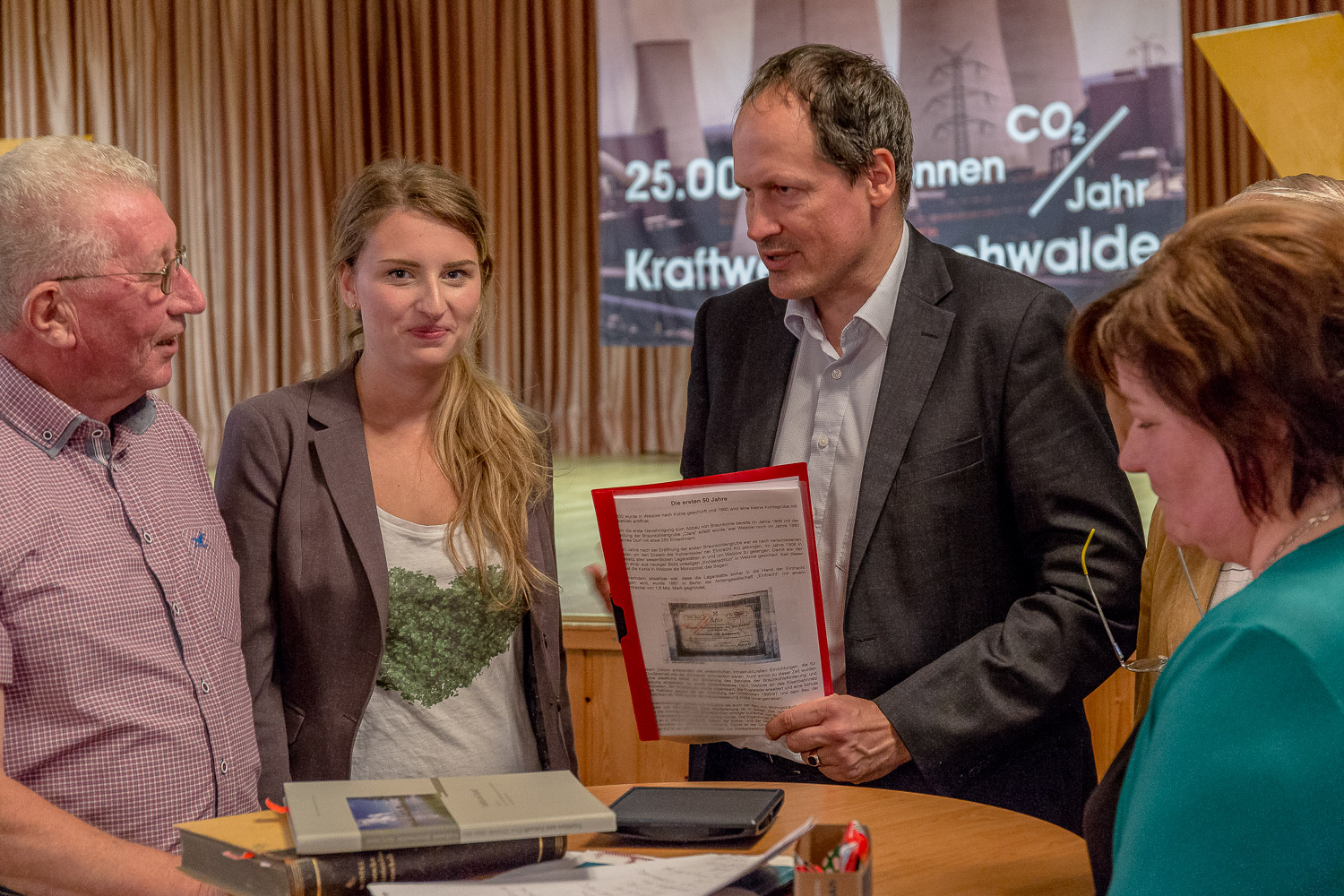 www.ideengruen.de | markus pichlmaierBraunkohlekritiker aus Welzow eröffneten am Mittwochabend im Proschimer Kulturhaus eine Ausstellung, die sich mit dem Braunkohlebergbau in der Region befasst. Unter dem Titel „Fluch oder Segen: Erinnerung an 150 Jahre Kohle in Welzow – Ein Blick hinter die Kulissen“ wird auf 20 Tafeln der 150 Jährige Bergbau kritisch begleitet. Die Ausstellung ist noch bis zum 28. September im Kulturhaus zu besichtigen. Zu der Eröffnungsveranstaltung kamen über 50 Gäste, darunter der Wirtschaftswissenschaftler Dr. Christian von Hirschhausen vom Deutschen Institut für Wirtschaftsforschung, die Landtagsabgeordnete Heide Schinowsky (Bündnis 90/Die Grünen), der Kreischef der Grünen Spree-Neiße Wolfgang Renner und der BUND-Geschäftsführer Axel Kruschat. Die Ausstellung war eine Idee des kürzlich verstorbenen Proschimer Urgesteins Johannes Kapelle, die nun von seinen Vertrauten und Mitstreitern fertig gestellt wurde, teilte Hannelore Wodtke mit. Kapelle wollte den öffentlichen Feierlichkeiten der Stadt Welzow zum Jubiläum des Braunkohleabbaus eine kritische Sichtweise entgegensetzen. Seine Enkelin Darena Kapelle eröffnete feierlich die Ausstellung und kündigte an, die Arbeit ihres Großvaters weiterzuführen. Eine sinnlose Abbaggerung von Proschim darf es nicht geben, forderte die Studentin.