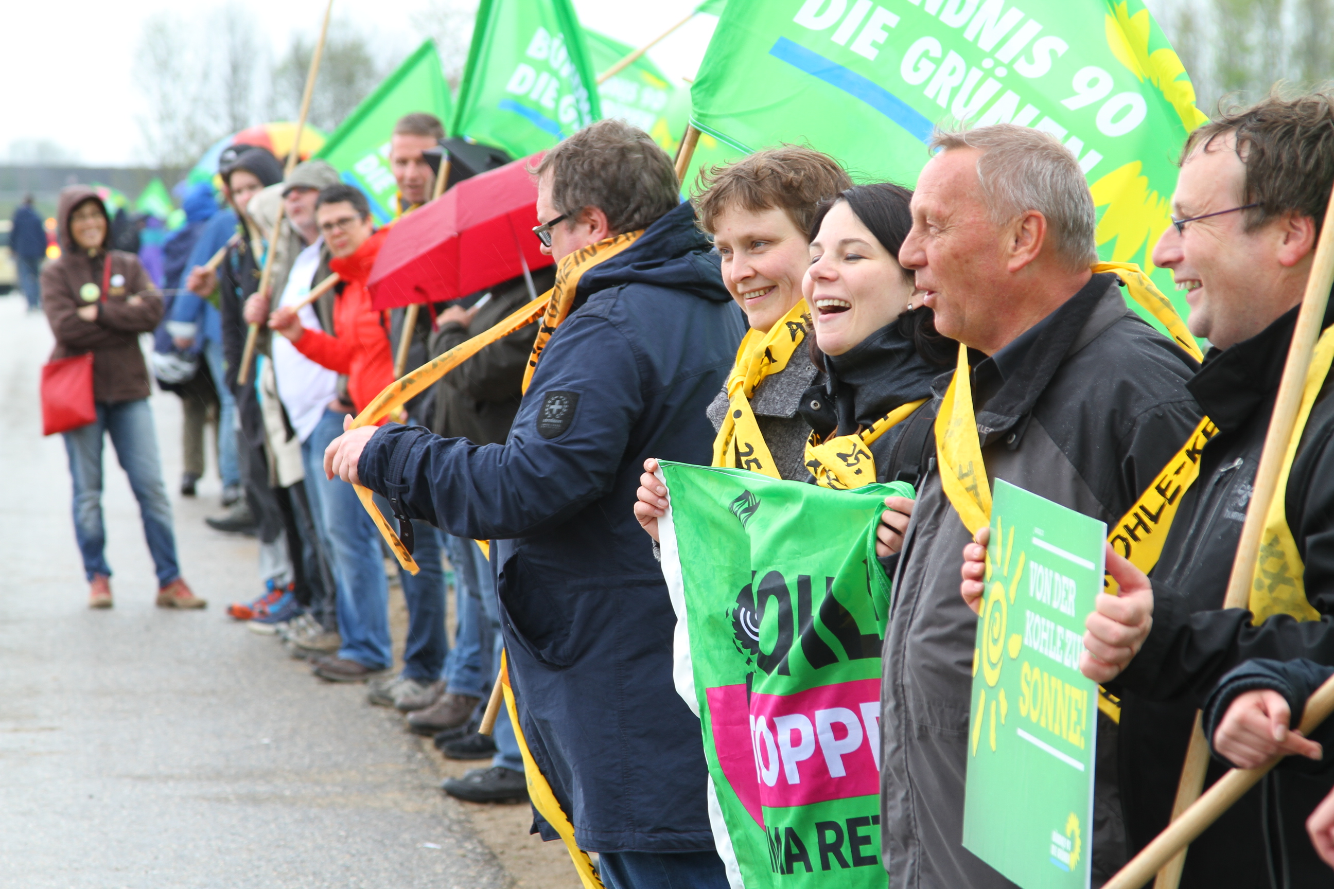 Mehr als 6.Menschenkette000 Teilnehmer aus ganz Europa bildeten heute eine 7,5 Kilometer lange Menschenkette am Tagebau Garzweiler (Nordrhein-Westfalen), um für mehr Klimaschutz zu demonstrieren. „Wir müssen jetzt die Weichen für ein mittelfristiges Auslaufen der Braunkohleverstromung stellen“, sagte die Brandenburger Landtagsabgeordnete Heide Schinowsky (Bündnis 90/Die Grünen). Grünenpolitiker aus Ostdeutschland, wie beispielsweise die Brandenburger Bundestagsabgeordnete Annalena Baerbock reisten zusammen mit vielen Aktivisten heute ins Rheinland, um den Protest zu unterstützen. Zahlreiche Umwelt- und Entwicklungsorganisationen sowie Kirchen riefen bundesweit zu dem Protest auf.