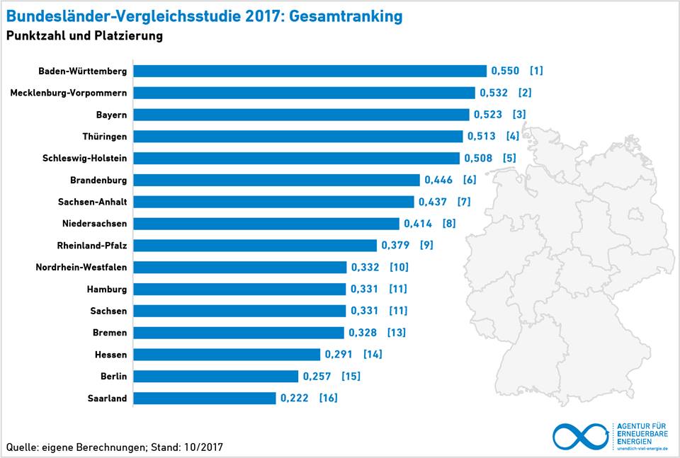 Bundesländervergleich Erneuerbare Energien: Brandenburg verliert weiter an Boden