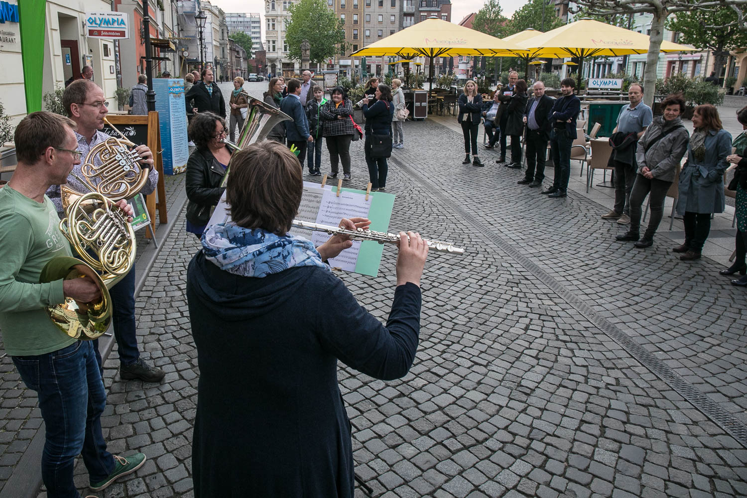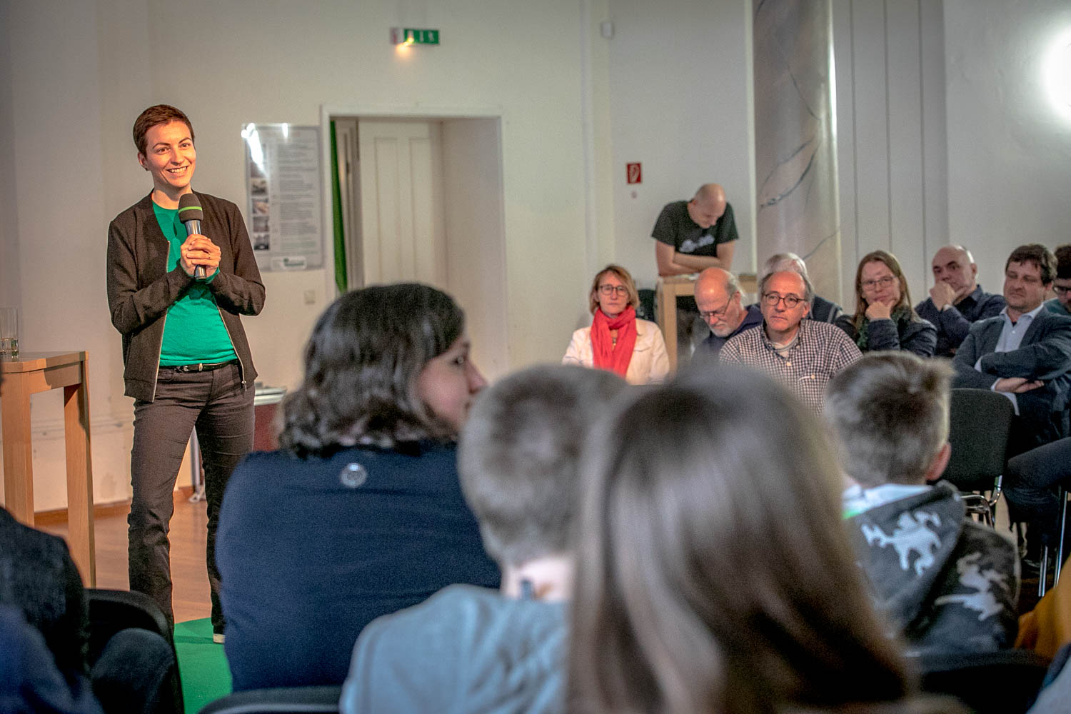 www.ideengruen.de | markus pichlmaierMit der Europa-Hymne begrüßte die neu gegründete "Grüne Kapelle" am Montagabend die Spitzenkandidatin der europäischen Grünen Ska Keller auf dem Cottbuser Altmarkt. Die Europapolitikerin Keller hatte gemeinsam mit den Lausitzer Bündnisgrünen zu einem "Town-Hall-Meeting" in das Alte Stadthaus geladen. Zu dem Austausch kamen mehr als 70 interessierte Lausitzerinnen und Lausitzer, um sich über grüne Politik zu informieren. Im Gegensatz zu klassischen Wahlkampfveranstaltungen mit Frontalreden hatten sich die Bündnisgrünen für ein offenes Format entschieden: "Heute Abend geht es um Ihre Fragen zu Europa", sagte die Moderatorin des Abends Heide Schinowsky. Es folgte ein Frage-Rundumschlag quer durch viele Themen angefangen von Europa als Friedensprojekt bis zum Kampf gegen den überbordenden Plastikmüll, von der Kritik an der Internet-Zensur durch die neue Urheberrechtsreform bis zur Unterstützung des Strukturwandels.