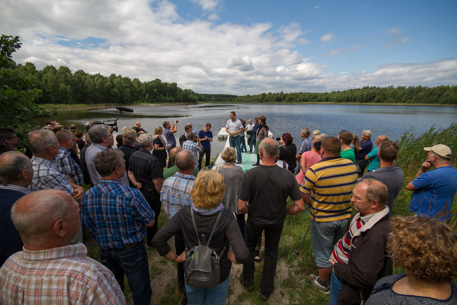 Die energiepolitische Sprecherin und der umweltpolitische Sprecher der Fraktion von BÜNDNIS 90/DIE GRÜNEN HEIDE SCHINOWSKY und BENJAMIN RASCHKE, haben am Montag gemeinsam mit Anwohnern, Vertretern vom lokalen Anglerverband und der Gemeinde Schenkendöbern den vom Fischsterben betroffenen Pastlingsee in der Nähe des Tagebaus Jänschwalde besucht. Etwa 60 Interessierte nahmen an der öffentlichen Begehung teil. Der Bergbaukonzern Vattenfall und das Landesumweltamt sagten eine Beteiligung ab. Von mehreren betroffenen Gewässern in der Umgebung des Tagebaus verzeichnet der Pastlingsee den massivsten Wasserrückgang. Der aktuell sehr niedrige Wasserstand des unter Naturschutz stehenden Sees führte in den vergangenen Wochen zu einem dramatischen Fischsterben. Einen erheblichen Wasserrückgang verzeichnen auch andere Seen in der Region, wie der Großsee. Um die Braunkohle im Tagebau Jänschwalde abbauen zu können, müssen über 100 Millionen Kubikmeter Wasser pro Jahr abgepumpt werden. Im Gegensatz zum Brandenburger Landesamt für Umwelt, Gesundheit und Verbraucherschutz (LUGV) bestreitet der Bergbaubetreiber Vattenfall einen Zusammenhang zwischen den Tagebauaktivitäten und den sinkenden Wasserständen. Für den Energiekonzern liegen die Ursachen allein in der warmen und niederschlagsarmen Witterung begründet.